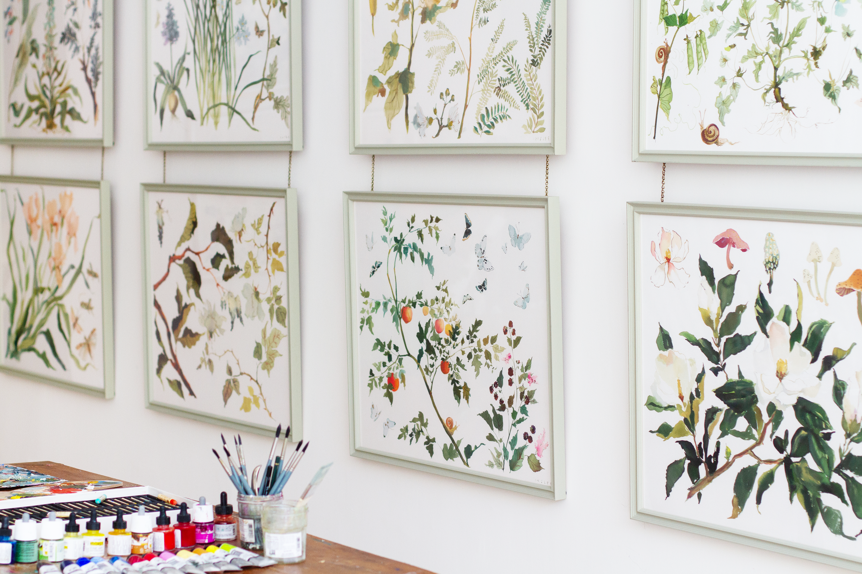 Inspired by antique botanical studies found in a Paris apartment, this collection features twelve original watercolor works by Inslee, now available as large fine art prints. Soft, expressive, and timeless, each piece brings a sense of collected beauty and effortless charm to any space.