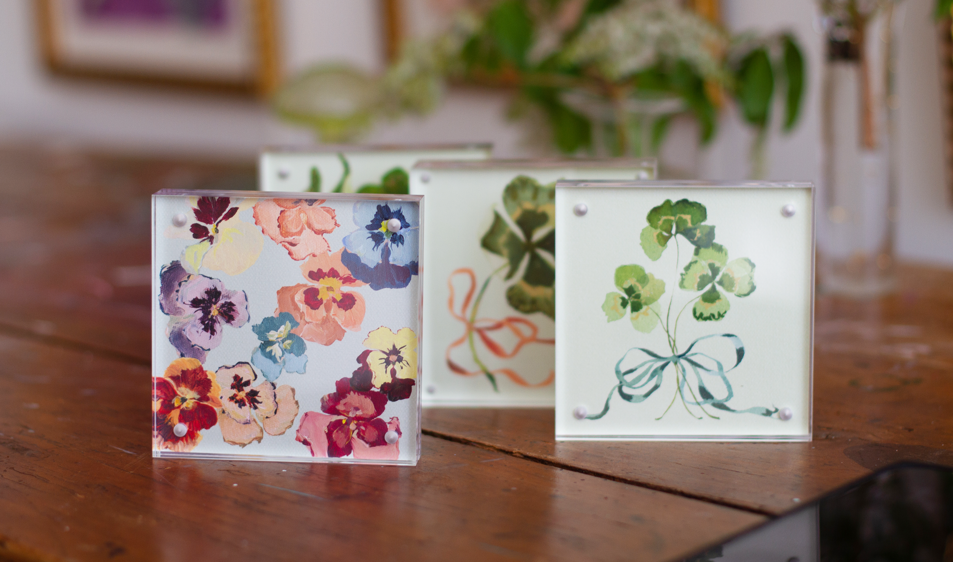 These new blocks feel like the first signs of the season — colorful, playful, and easy to style anywhere. Designed from Inslee’s original artwork and set in clear acrylic, they’re the perfect way to add a light, happy touch to your space.
